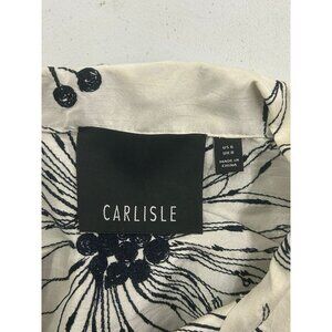 The Carlisle Silk Blend Blazer Jacket in size 6 is a stylish and elegant women's clothing piece. This blazer features a white and black floral embroidery, making it a standout addition to any outfit. Made from a luxurious silk blend material, this one-piece jacket has long sleeves and a regular fit. The jacket should be dry cleaned only, and is designed to be a suit jacket/blazer style. With its high-quality brand and exquisite design, this blazer is sure to elevate any wardrobe.