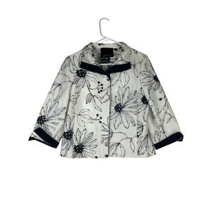 Carlisle Womens Silk Blend Blazer Jacket White Black Embroidery Size 6