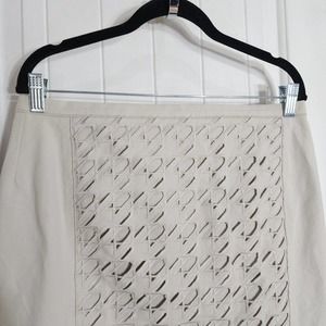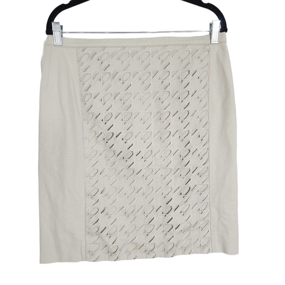 Carlisle Womens Skirt Beige Houndstooth Cut Out Embroidered Pencil Mini Size 8 M