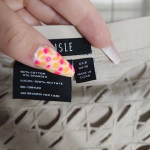 Carlisle Women's Skirt Beige Houndstooth Cut Out Embroidered Pencil Mini Academia