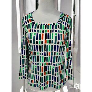 Carlisle Womens Small Geometric Print Quarter Sleeve Stretch Top Multicolor