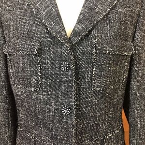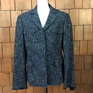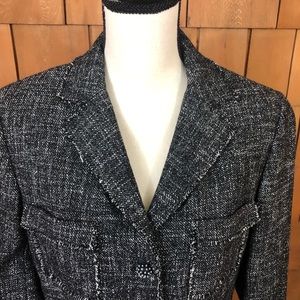 Carlisle black & white wool blazer raw hem