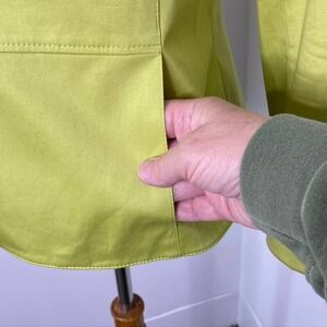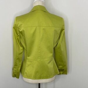 Carlisle cotton/spandex blazer. Green jacket with shoulder pads, cuffed sleeves, hook front closure. Fully lined. Tiny spot on side. Great overall condition.