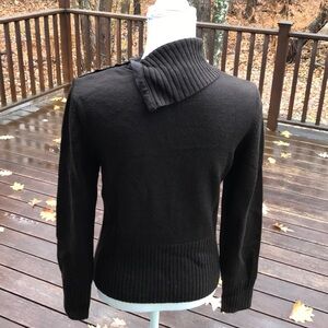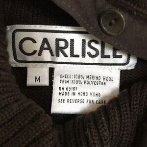 Carlisle size medium dark brown merino wool sweater with Ribbed ends and shoulder buttons. Can be worn as a turtle neck too. Great condition.
