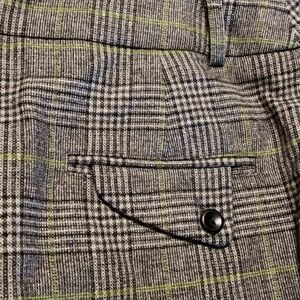 Nice grey black plaid with lime green accents euc no issues neat back pocket details size 8 with 30 inch inseam wool blend fully lined straight leg pant trousers