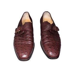 Carlo Di Nuzzo men’s size 11 ostrich Leather monk single strap buckle loafer made in Italy