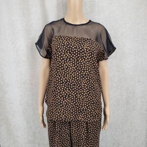 Carlo Moda Vintage Matching Set Black Gold Dot Trousers Blouse Illusion Neckline