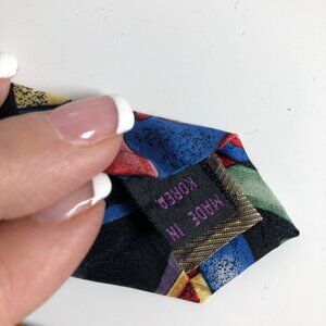 This handcrafted silk tie from Carlo Palazzi Studio features a vibrant geometric abstract multicolor design. A stylish accessory for formal or business settings.