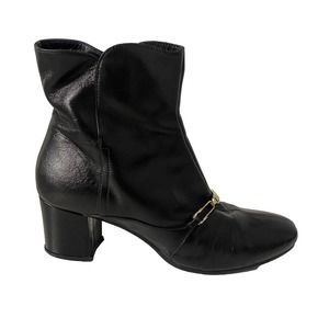 Carlo Pazolini Anke Boot Bootie Black Round Toe Side Zip Block Heel Gold…
