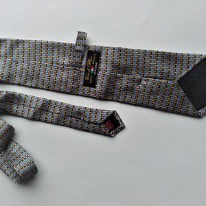 Carlo Ricci Blue, Yellow Gold & Black 100% Silk Tie. Very beautiful and dainty silk tie with small rectangular patterns.