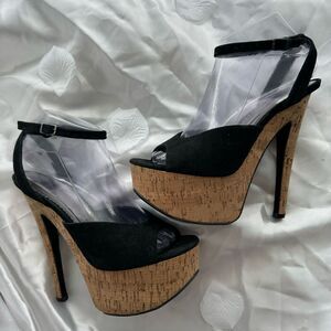 Carlo Rossetti Cork Platform Pump Open Toe Black/Tan Women’s Shoe Size 8.5