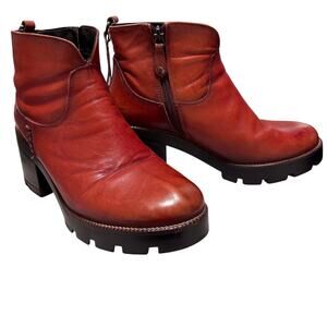 Carlo Rossetti Size 7.5 Burgundy Leather Chunky Heel Platform Booties Side Zip