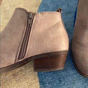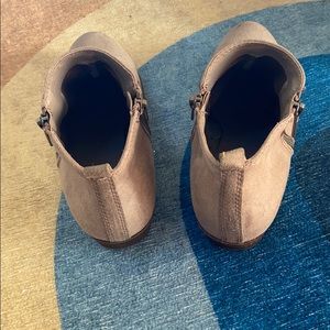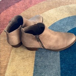 These shoes are in brand new condition. They are definitely one of the best booties. They have a cute slim fit with a rounded toe. The heel is about 2 inches.