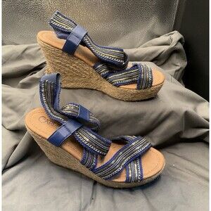 Carlos By Carlos Santana Corelle Blue Natural Wedge Sandals Espadrille Size 7