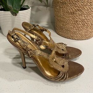 Carlos By Carlos Santana “Entrance” Metallic Golden Slingback Heels Women’s 6.5