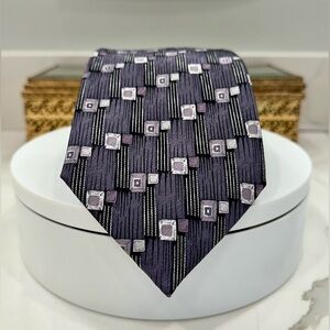 Carlos Devenezia - Roma - Barcelona - Handmade - Klimt-esque Rectangle/Square Geometric Patterned Print Silk Tie in Silver and Grays - EUC