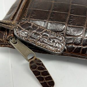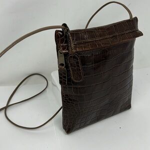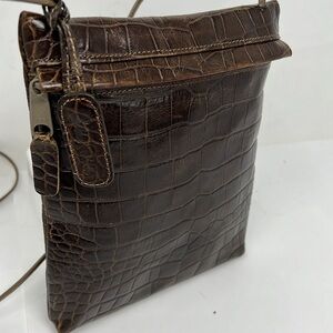 Carlos Falchi Brown Leather Croc Embossed Crossbody Zipper Bag