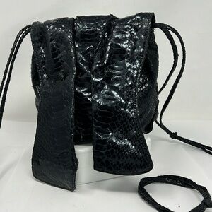 Carlos Falchi Butterfly Black Python Embossed Crossbody Bag