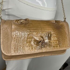 Carlos Falchi Exotic Crocodile Alligator and Leather Snap Envelope Clutch Bag