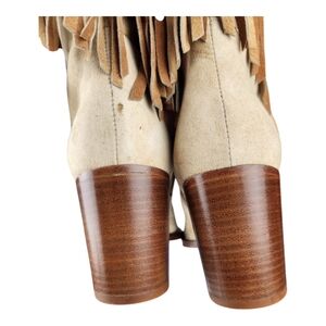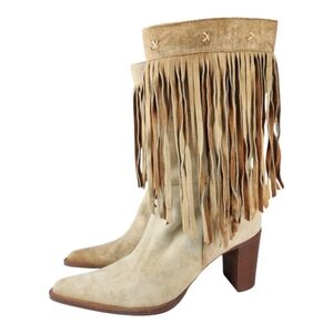 Carlos Falchi Fiorina Suede Leather Fringe Cowgirl Boots 3" Heel Mid-Cal…