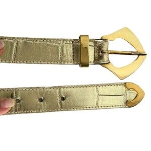 Carlos Falchi Gold Metallic Leather Belt Womens Size M/L Alligator Croc Embossed