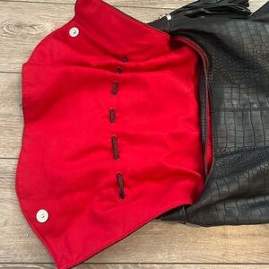 Carlos Falchi Large Black Faux Croc Bag Pleated/Gathered Flap Red Interior