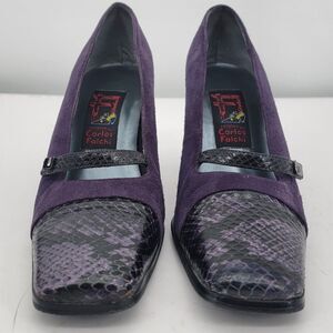 Carlos Falchi Vintage Size 6.5 Purple Suede Leather high Heels Retro Square Toe