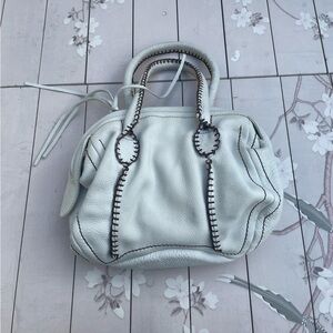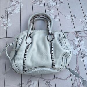 Carlos Falchi White Satchel with Black Stitching