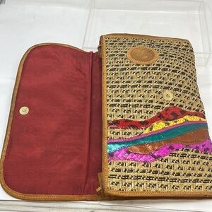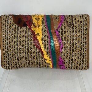 Carlos Falchi Woven Leather and Hemp and Exotic Patchwork of Skins Clutch Bag