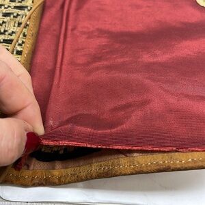This is a gorgeous vintage 1970’s Carlos Falchi Woven Leather and Hemp and Exotic Patchwork of Skins Clutch Bag. Python, snakeskin, pony hair, cow patch and others with a beautiful metal medallion. Can be worn as a clutch or a shoulder crossbody bag. Leather trim shows some normal wear. No exterior tears. Hidden snap closure opens to a fully lined interior with wall zipper pocket. Lining shows some normal spotting and a slight tear at the edge, that can easily by stitched at any dry cleaners. 13” x 8.25” x 3.25” with a hidden detachable adjustable 25” strap. No odors.