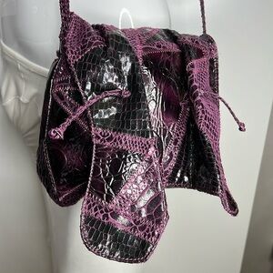 This is a beautiful Carlos Falchi for Target Butterfly Purple Grape Python Embossed Crossbody Bag. Perfect condition. No issues at all. Hidden magnetic closure. Beautiful floral fabric interior. Wall zipper pocket. Super roomy. 8”H x 10”W x 4” with a 22” strap.