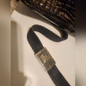 -Thick black twill shoulder strap that has a thick silver Falchi emblem on it