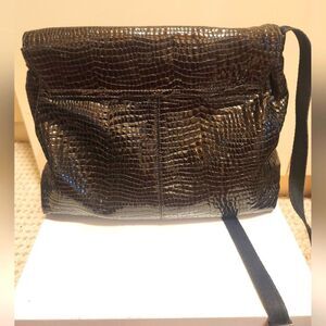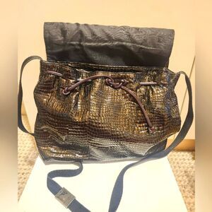 Carlos Falchi Dark Brown Python Print Patent Leather Shoulder Bag Ret.$448