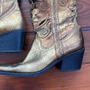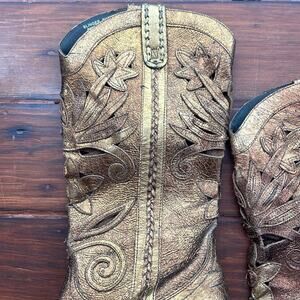 Carlos Santana Slinger metallic leather cutout shaft pointed toe western cowboy rodeo boots 5.5M