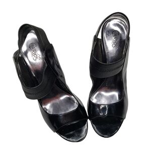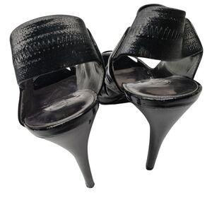 Carlos Santana | Angelic Black Patent Leather Peep Toe Mary Jane Stilettos 7