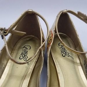 Carlos Santana Flirt Multicolor Gold Accent Peep Toe Ankle Strap Flats Size 6