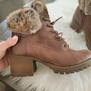Carlos Santana Gabby Fur Lace Up Bootie 10