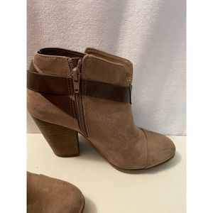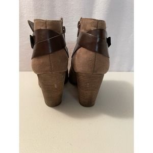 Faux suede stylish ankle stacked heel boots size 7.5 M Harvest