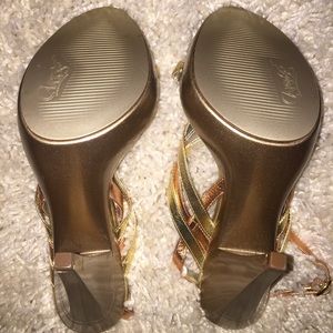 Slingback gold & rose gold criss-cross strap heels. Brand new, never been worn, scuffs are only from having no box. 5 inch heel. Comfortable & easy to walk in. Purchased from Macys.