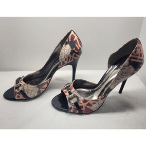 Carlos Santana Roulette Pink Roses High Heels Open Toe Womens Stilettos Size 7M