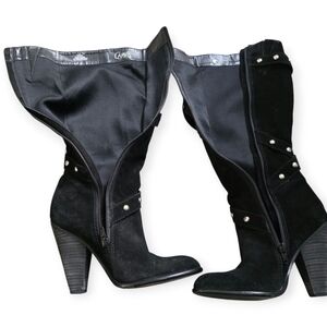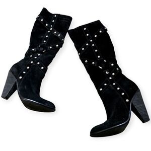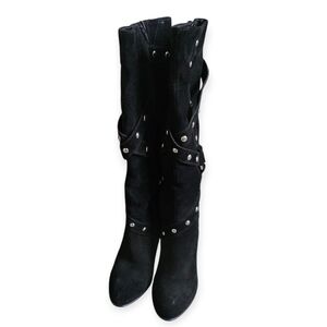 Carlos Santana Studded Heel Suede Boots, Black, Size 7M