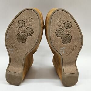 Carlos Santana Wedge 7M Slide Sandal Tan Brown Suede Boho Western 5"H NOS