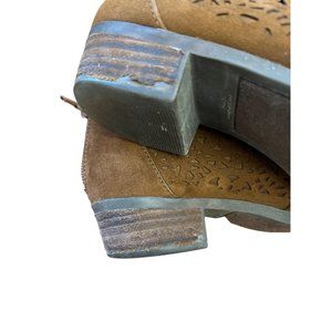 Carlos Santana Womens Shoes 6M Brett Brown Ankle Boot Faux Laser Cut Suede Heel