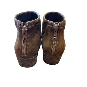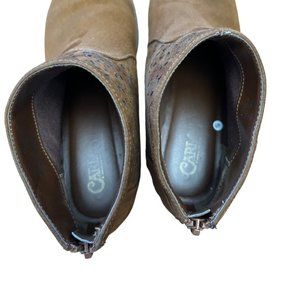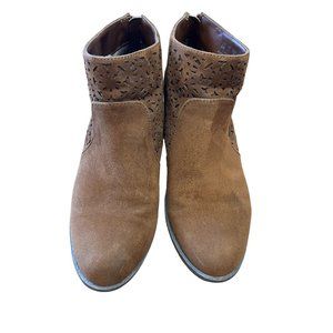Carlos Santana Womens Shoes 6M Brett Brown Ankle Boot Faux Laser Cut Suede Heel Zip