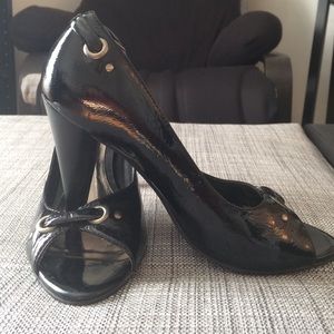 Carlos Santana shiny black peep toe heels with silver hardware. Worn twice, only signs of wear is on the bottom, otherwise perfect condition!