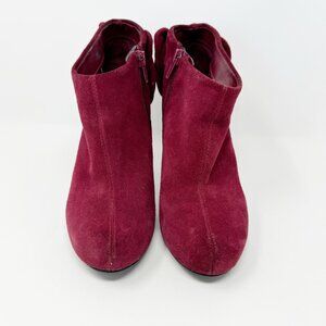Carlos Womens Burgundy Sued Leather Bow Accent Zip Stiletto Booties Size 6.5
