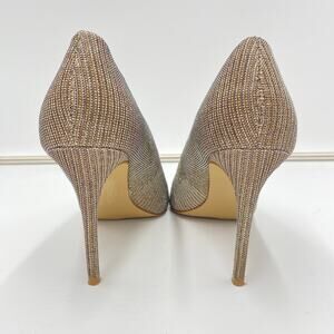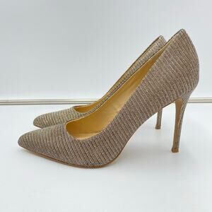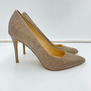 Carlos Women's Gold Silver Mesh Sparkle Pointy Toe Stiletto Posy Heels Size 9