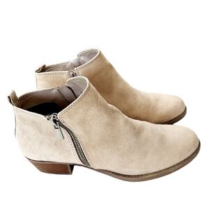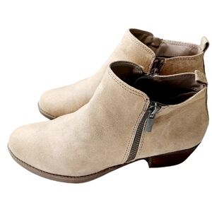 Carlos Womens Size 9 Brie Taupe Faux Suede Microfiber Heeled Ankle Booties Vegan