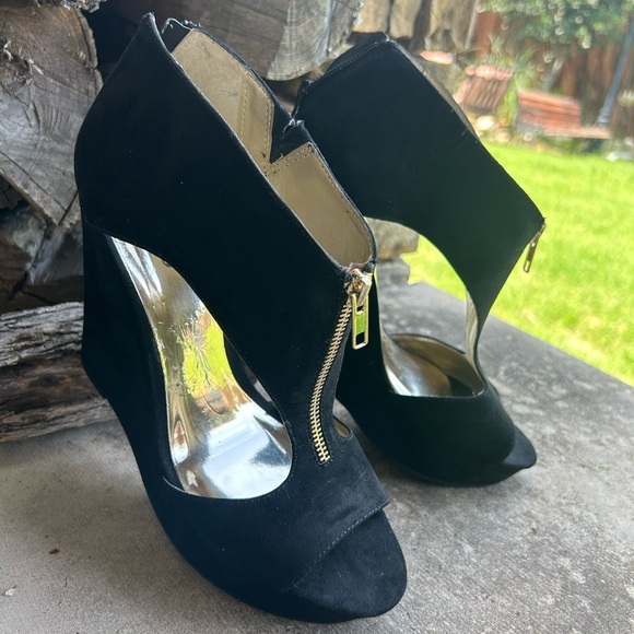 Carlos by Carlos Santana Brynn Black platform wedge sandal w/back zip Sz-10. P