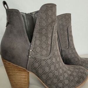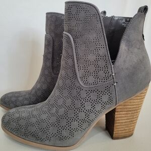 Carlos by Carlos Santana Gray Perforated Faux Suede Holly Ankle Boots - Size 9